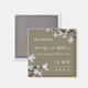 An original illustration of beautiful white cherry blossoms or sakura spring flowers with black branches on a warm grey/grey background. This is a modern save the date announcement magnet.
