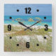 "WHITE SAND BEACH, SEA GRASS, BLUE-GREEN WATER" SQUARE WALL CLOCK