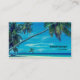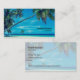 Business cards with a tropical themed photo featuring coconut palms stretching out across a secluded white sandy beach. Turquoise waters and an azure blue sky in the background.
