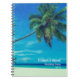 A custom notebook for wedding plans, or personalized with whatever text suits your occasion / needs designed with a tropical themed photo featuring coconut palms stretching out across a secluded white sandy beach. Turquoise waters and an azure blue sky in the background.