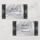 Elegant Black Lace Professional Business Cards On White Satin Background. Unique business cards with a retro vintage antique black lace roses fabric look both on the front and on the back of the card ready for you to add your custom information. Black, beautiful script text on the front and on the back can easily be changed. Perfect for the interior decorator, wedding and bridal dress business, event planner, vintage store, and clothing, sewing, fabric textile business also.