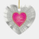 White Satin & Pink Heart Wedding Keepsake Ceramic Ornament
