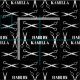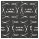 Black fabric for a hair stylist or hair dresser with six pair of scissors framing your name, monogram, or business name.