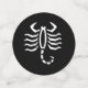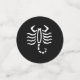 Table confetti with white Scorpio scorpion astrology zodiac sign on a black background. Customisable. Perfect for birthday celebrations.