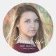 White Script Graduate Custom Photo Classic Round Sticker