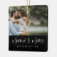 Crafted from high-quality ceramic, this ornament is durable and long-lasting, perfect for adorning your Christmas tree year after year. Create a lasting memory with this unique and personalised White Script Married & Merry Black Photo Ornament, designed to bring joy and warmth to your holiday celebrations.