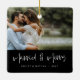 Celebrate your special day with our elegant White Script Married & Merry Black Photo Ornament. This exquisite ceramic square ornament is the perfect way to commemorate your wedding or special occasion and makes a thoughtful holiday gift for loved ones.
