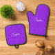 White Script Name or Monogram on Purple Oven Mitt & Pot Holder Set