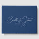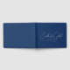 This flowing white handwritten script calligraphy on navy blue wedding guest book is perfect for a modern wedding. Simple minimalist design.