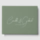 This flowing white handwritten script calligraphy on sage green wedding guest book is perfect for a modern wedding. Simple minimalist design.