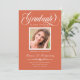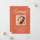 Announce your college graduation to your family and friends in style with this elegant custom photo announcement card. This modern design template features elegant white calligraphy script that reads "Graduate Class of 20XX" with your name, college, degree and date to personalise on a burnt orange background. Congratulations on your graduation! Designed by Susan Coffey.