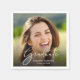 Chic graduation party napkins featuring the graduate's photo overlayed with "Graduate" in an elegant white script and her name and class year in simple white typography.