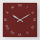 White Script Roman Numbers On Red wccnt Square Wall Clock
