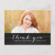 Trendy White Script Rustic Graduation Thank You Card. Design by Elke Clarke © Visit our shop www.zazzle.com/monogramgallery* for more colours and styles. Add your own photo and text. A simple white typography handwritten script font text overlay on a black chalkboard background (printed photo effect) with the words "Thank You". Replace sample photo with your own.
