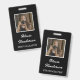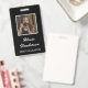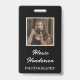 Make sure people know who you are when at your booth, walking around events and trade shows with this black and white photo name tag that features white script and modern typography and personal photo with white border on a black background on both sides.