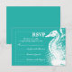 White seahorse on light sea green summer wedding RSVP card, featuring a white seahorse and a white dotted frame on light sea green. Perfect for summer, beach themed weddings.