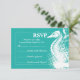 White seahorse on light sea green summer wedding RSVP card, featuring a white seahorse and a white dotted frame on light sea green. Perfect for summer, beach themed weddings.