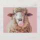 White Sheep Blowing Pink Bubble Gum Bubble Postcard