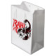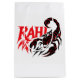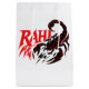 A white paper or plastic shopping bag featuring a graphic design of a scorpion.