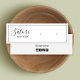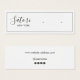 Simple white stud earring display holder with two printed hole "markers". Script font and thin black border. Colour customisable social media icons on the backside.