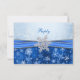 Silver snowflake on a blue snowflakes background decorated with printed image of blue ribbon RSVP Invitation