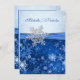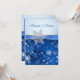 Silver snowflake on a blue snowflakes background decorated with printed image of blue ribbon Wedding Invitation