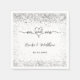 A chic white background. Decorated with faux silver glitter sparkles. Personalise and add your names and a date. Mr and Mrs with a heart.