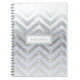 White & Silver Glitter Sparkle Modern Notebook. Customise the front with or without text. The name area can be left on the design or removed. You may also reposition it anywhere.