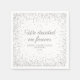 Elegant white with silver glitter wedding reception paper napkins with text, "We decided on forever." and space to add the bride's and groom's names and wedding date.