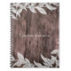 White & Silver Leaves & Rustic Wood Elegant Notebook