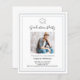 A white background, decorated with a grey frame, and a faux silver graduation cap. Personalise and add a photo name and details. black text.