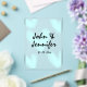 white simple minimal text style wedding blue heart acrylic invitations