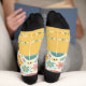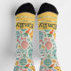 A white pattern-based sock design with cute Easter object. Great for Easter events. Just customise the name, personalise it, and gift it.