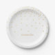 White & Small Gold Foil Confetti Dots Party Plates. Customise with any text. Matching items are available.