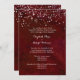 This elegant yet modern wedding invitation suite has a dark red watercolor background with a scattering of white snow cascading from the top and white text, perfect for a winter or Christmas-themed wedding.