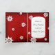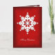 A simple snowflake in white on a red background. Several snowfalkes on the interior with a text box provided for a seasonal greetings on cover and inside. If the provided greeting isn't something you like you can insert your own.