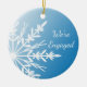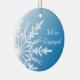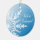 White Snowflake on Blue Engagement Ceramic Tree Decoration