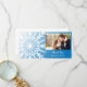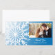 Customise the festive White Snowflake on Blue Winter Wedding Thank You Photo Card with your own personal message of thanks, gratitude, appreciation and your picture. Suitable to use for gifts received after your classy December, January or February winter wonderland theme bridal shower or marriage theme. This elegant custom wintery thank you photocard features an intricate snowflake design on a blue gradient background.