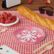 Paper plates in a white snowflake on a soft coral pink watercolor background