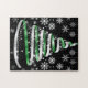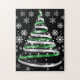 White Snowflake Silver Green Ribbon Christmas Tree Jigsaw Puzzle