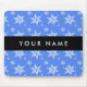 White Snowflakes, Blue, Your name, Personalise Mouse Pad