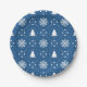 White Snowflakes Christmas Trees Blue Design Paper Plate