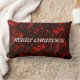 White Snowflakes Deep Red Bkgd Throw Pillow Lumbar