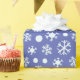 Adorned with modern white snowflakes, this vintage-inspired design adds a touch of nostalgia to your gift-giving traditions. The delicate and intricate snowflake patterns pop beautifully against the vibrant bright blue backdrop, creating a visually stunning contrast that captures the essence of a snowy Christmas wonderland. The white snowflakes, standing out vividly against the blue canvas, infuse a sense of magic and sophistication into your presents.