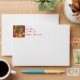Card envelope with an insert of white snowflakes on holiday red background with Bells. Customisable return address too.