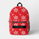 White Snowflakes, Red, Your name, Personalise Printed Backpack