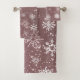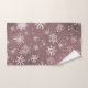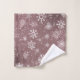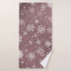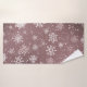 White snowflakes and snow in a backdrop of dusty rose pink.