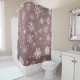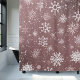 White snowflakes and snow in a a backdrop of dusty rose pink.