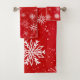 White Snowflakes Ruby Red Bath Towel Set
