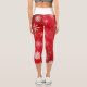 White Snowflakes Ruby Red Capri Leggings